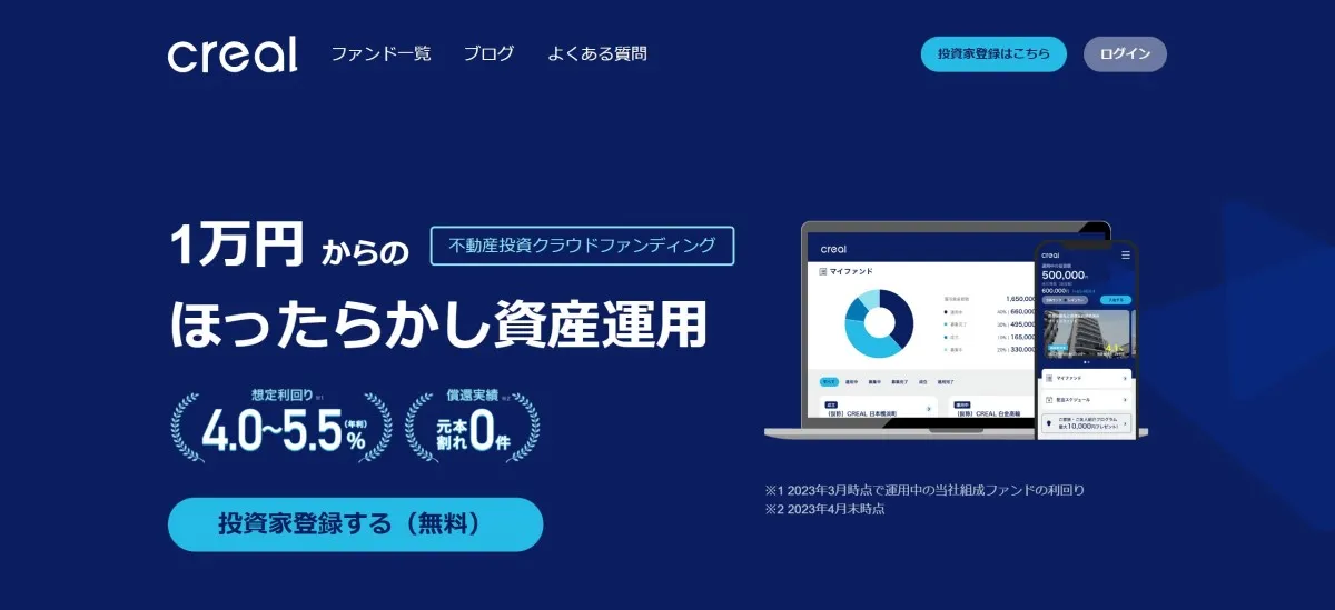 CREALは、そうした少額での投資が可能な点もメリットとなっています。